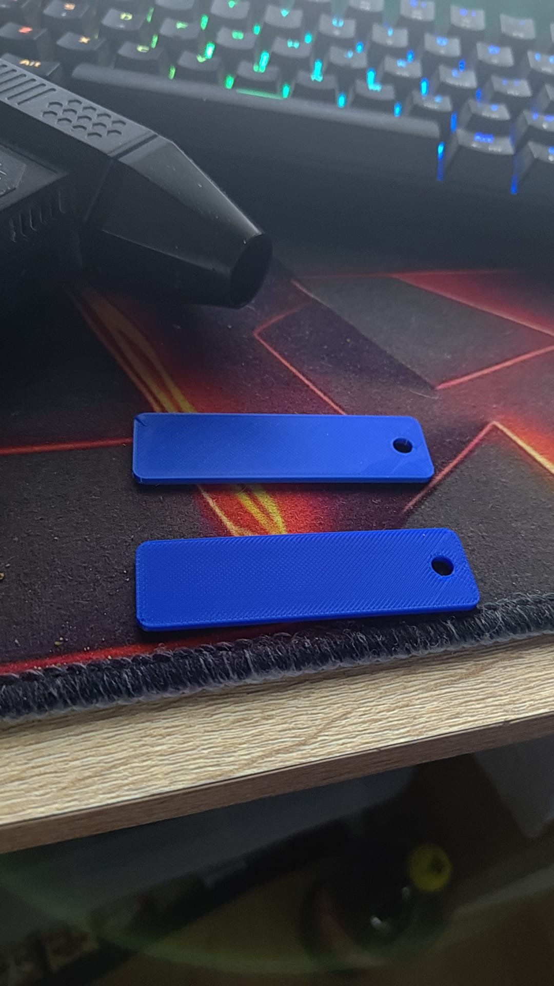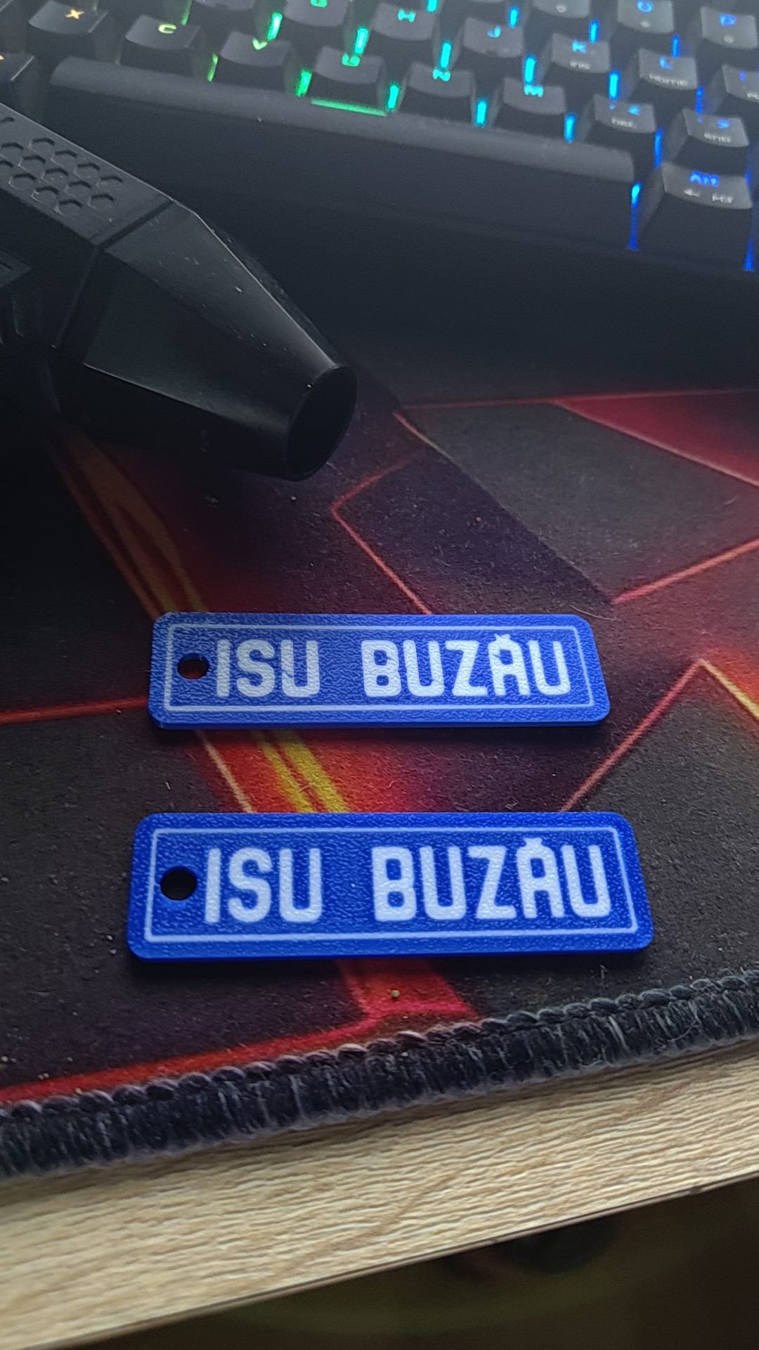 Breloc personalizat, albastru si negru.